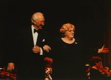 The audience at The Palace theatre in Louisville, Kentucky was treated to one heck of a performance on March 3, 2001. The Louisville Orchestra played several different Marches to start off the evening. After a brief intermission, a very handsome and distinquished gentlemen came to center stage and introduced himself as "the only person in the theatre who knows exactly what his epitah is going to read. Nick Clooney, brother of famous singer, actress.....Rosemary Clooney, father of director, producer, actor.....George Clooney, died today. Period." He mentioned that they'd grown up just up river in Maysville, Kentucky and that the folks in Louisville, got their bath water about three days later! He said he'd "heard some big talk, been to some big towns" and he now knows that nobody's sister sings like his. And with that he introduced Rosemary Clooney. Making her entrance to the background music of "Sentimental Journey" Rosemary told the audience they were looking awfully good and then began to sing. Her lyric notes dropped, and she said...."there goes my career." She said she was glad her brother came tonight, he even bought his own ticket. She made her lovely and beautiful sister-in-law, Nina Clooney, standup. She said she loved Nina cause she puts up with Nick. Did a new album of Big Band Music. Figured it was about time. Said that the Louisville Orchestra was her favorite orchestra and that wasn't just a lot of jazz, she really meant it. She said next song she likes to dedicate to her nephew George, cause she's 72 and she's not going to be able to do this much more, so she's glad he's doing so well financially. "We're in the Money" During an instrumental interlude....she came in a little too early...and said she was sorry....then she stood there and kept asking John "When?" "Now?" and he'd said..."Pretty Soon." Next she wanted to sing a gorgeous song that she doesn't have much occassion to sing, cause she doesn't always have a great horn section behind her, "It Never Entered My Mind." Next was Nelson Riddle's arrangment of "Limehouse Blues". And what she always remembers about this song is Fred Astaire and Lucille Brenner who were in this MGM thing with lots of stars and they were dancing on the waterfront. It has nothing to do with the song, but oh well, now she knows she's sounding like her brother." [there was more to the concert - but the notes are no longer available - sorry]