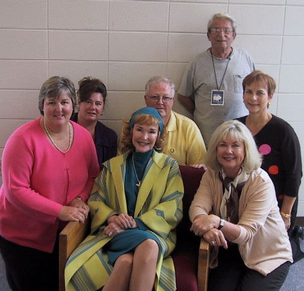 Before heading off to lunch, Mrs. Crosby posed with the volunteers and some of the members of the board of The Russell Theatre.